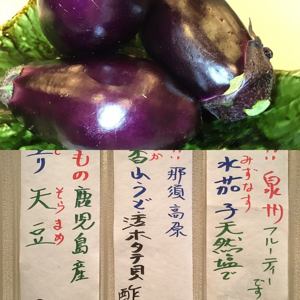 #天豆 ・ #山独活 ・ 水茄子、春の香りを是非ご賞味下さい😋