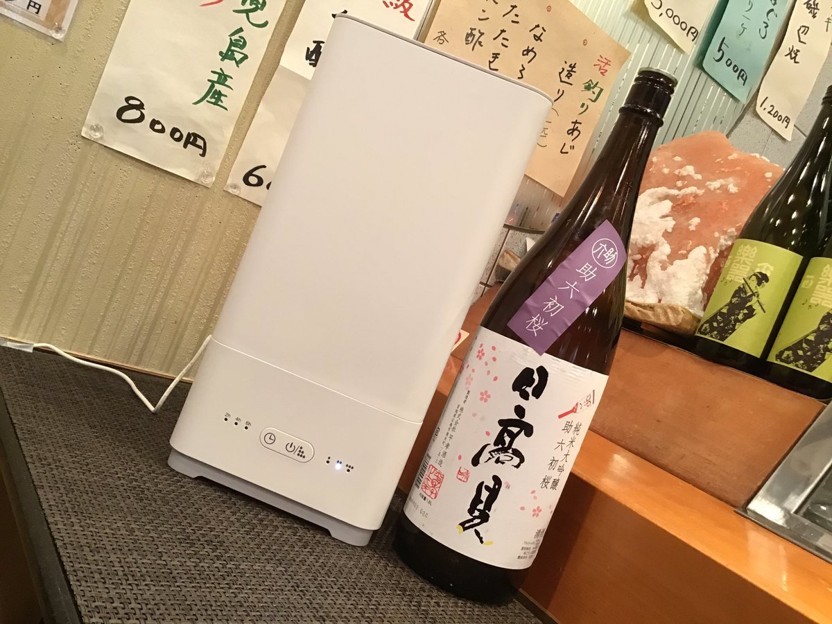 先日より導入の次亜塩素酸水によるウイルス除去、超音波噴霧器にて稼動中です