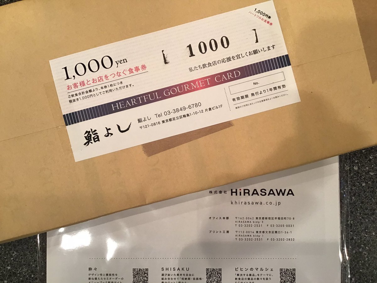 こちらは株式会社HIRASAWA様より無料で作製して頂いた食事券です