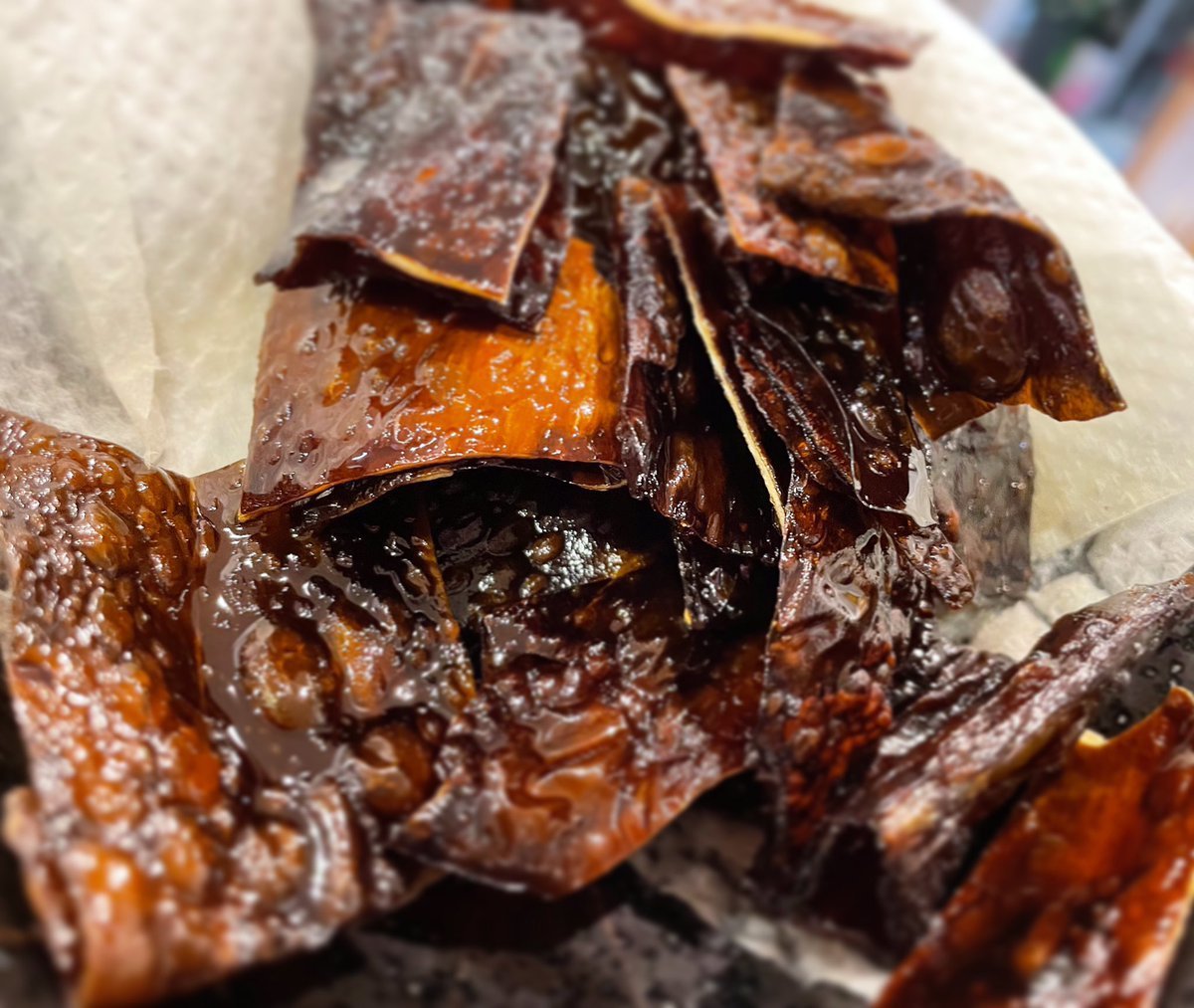 白身魚のお刺身が #胡麻油 と合うとの情報を得たので、昆布〆に使用した羅臼昆布を素揚げし、更に旨味を加えてみました🧐