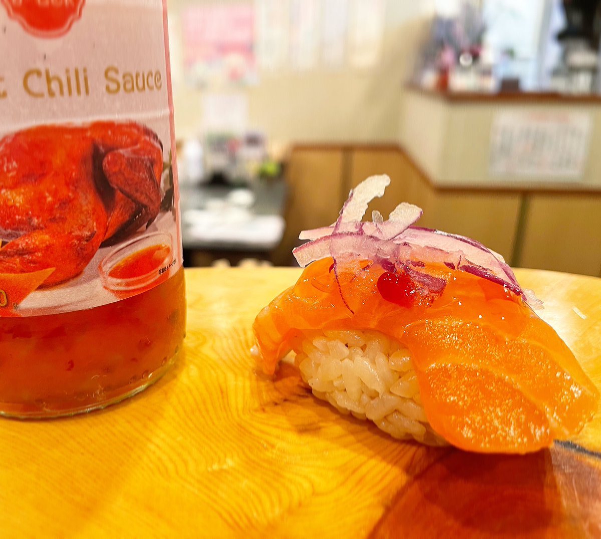 #スイートチリソース 掛け #サーモン の握り