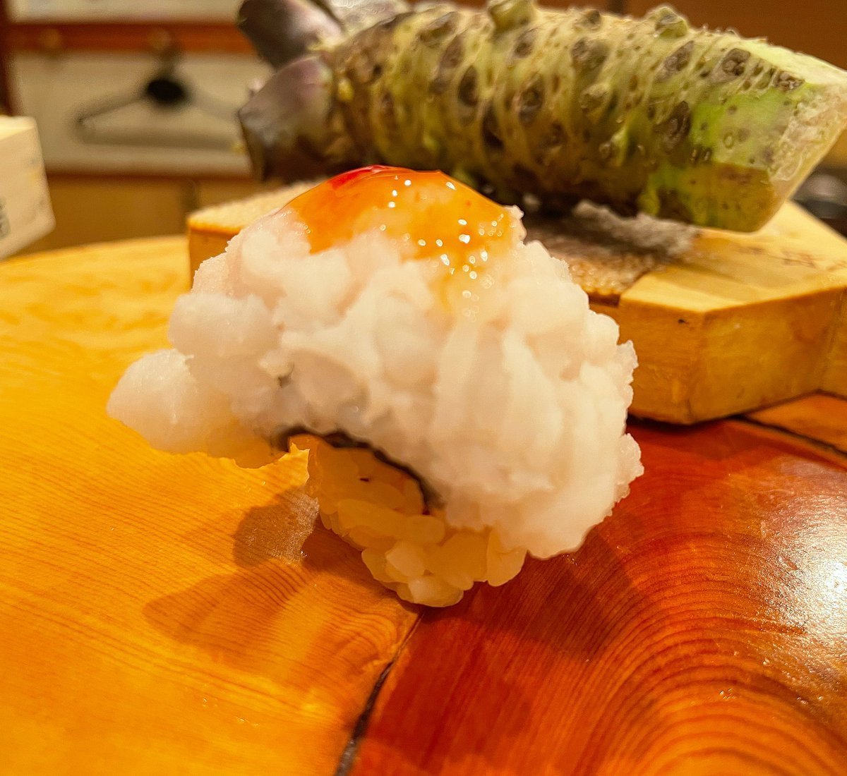 《 スイートチリソース掛け #鱧 の握り 》