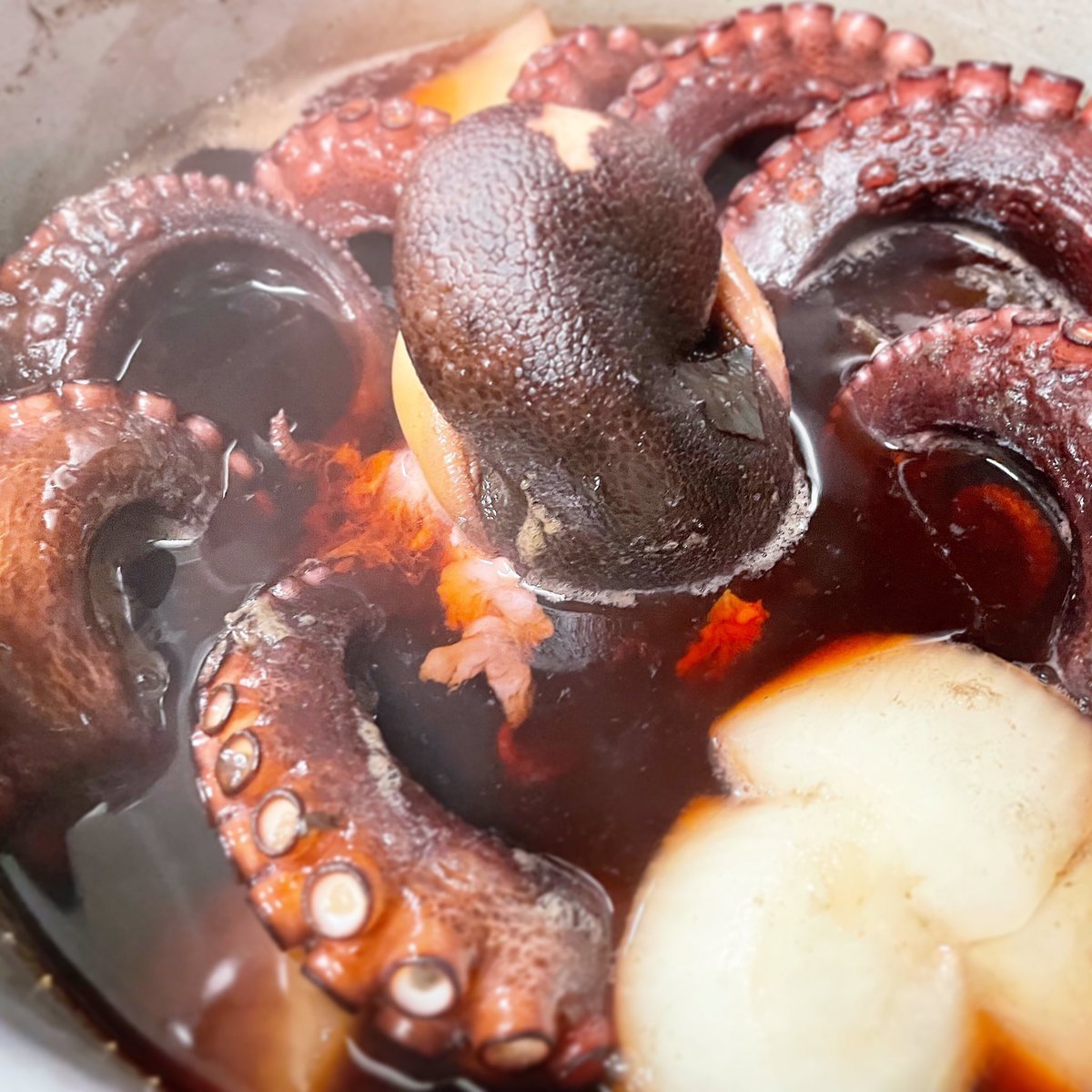 百叩きして崩れてしまった大根と一緒に炊き上げます😋