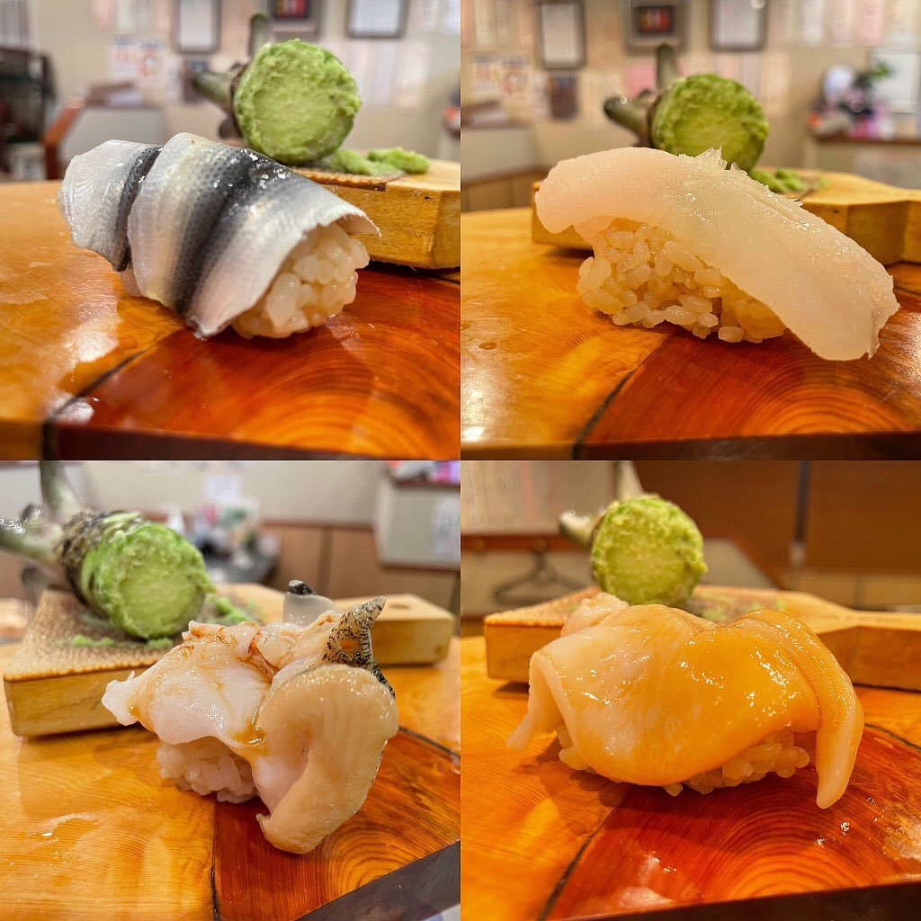 左上より時計回りに) #新子 ・生穴子・ #蝦夷石陰貝・ ツブ貝