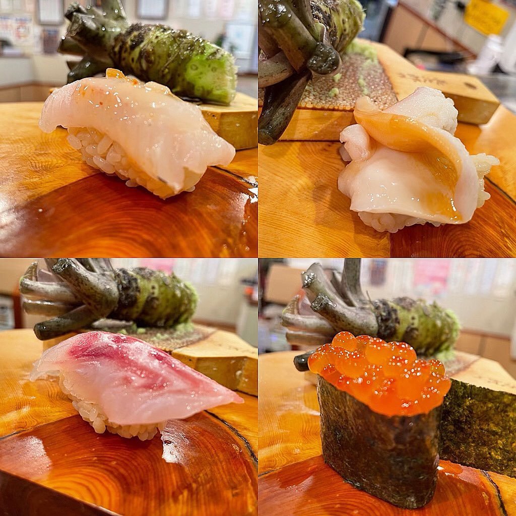 左上より時計回りに) 生穴子 ・#蝦夷石陰貝・#イクラ ・竹岡産 天然 #真鯛
