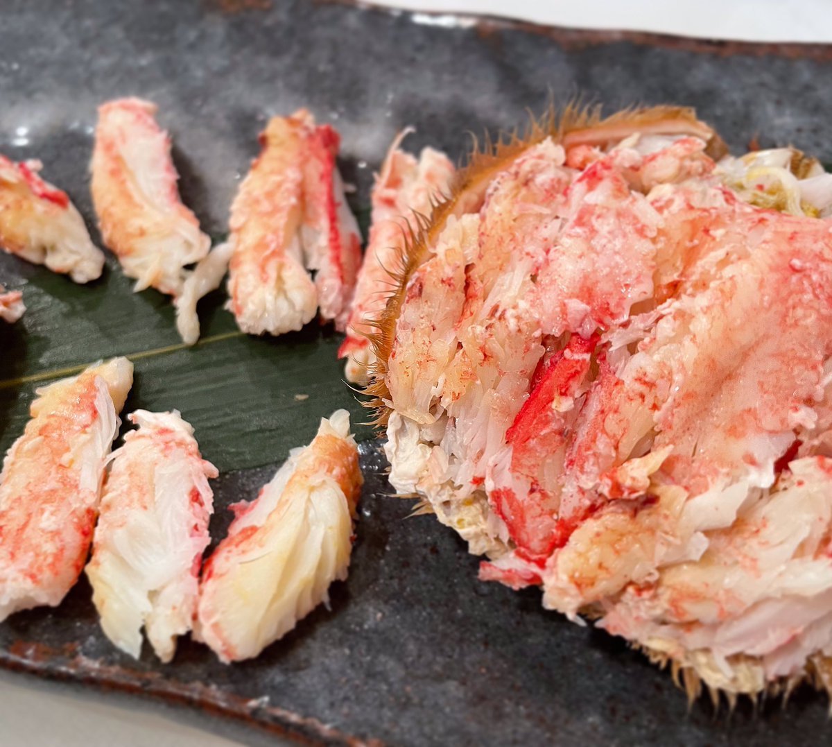 此処からの〜、一番太い足肉を乗せて並べます🦀